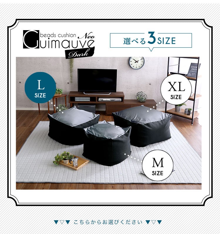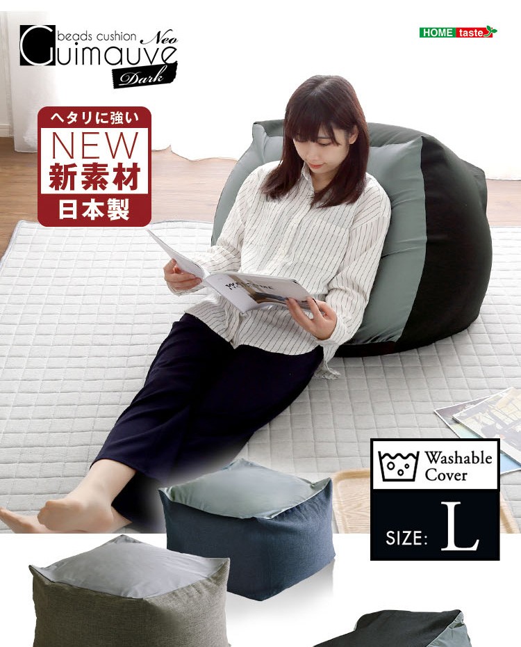 新配合でヘタリにくい キューブ型ビーズクッション ダークカラー |Guimauve Neo-ギモーブネオ- | ダークカラー Lサイズ