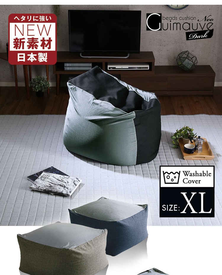 新配合でヘタリにくい キューブ型ビーズクッション ダークカラー |Guimauve Neo-ギモーブネオ- | ダークカラー XLサイズ