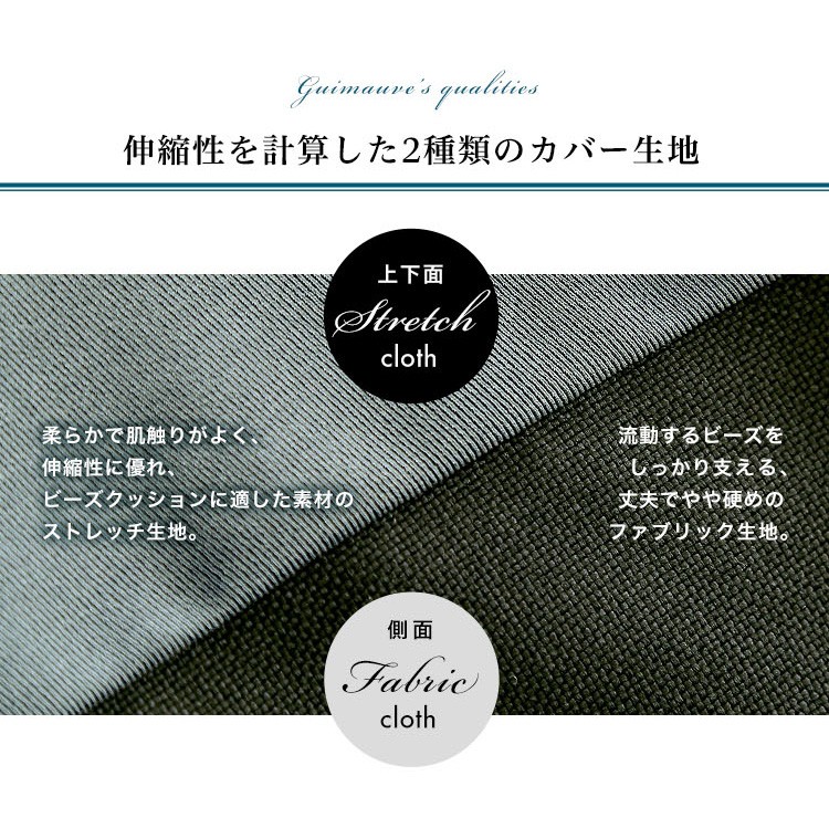 中材:発泡ポリスチレンビーズ/高弾性ウレタンフォーム