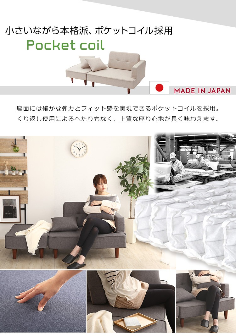 カウチソファ コンパクト ポケットコイル 2人掛け