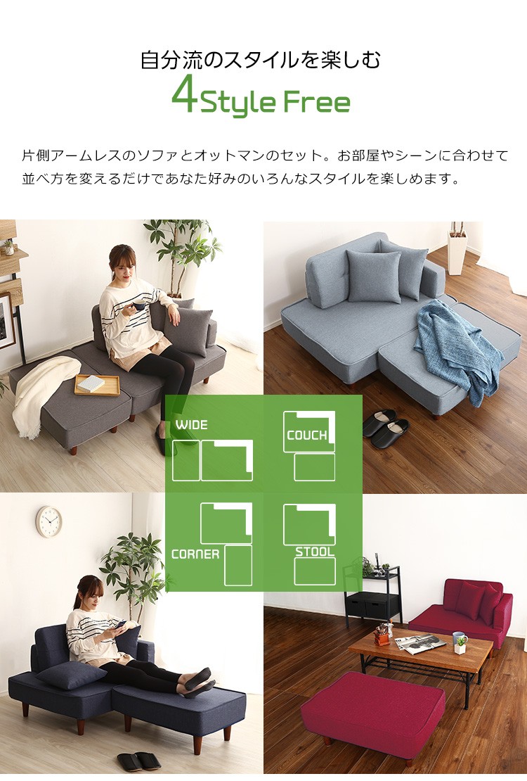 組み合わせ自由なコンパクトカウチソファ 【FLEO-フレオ-】