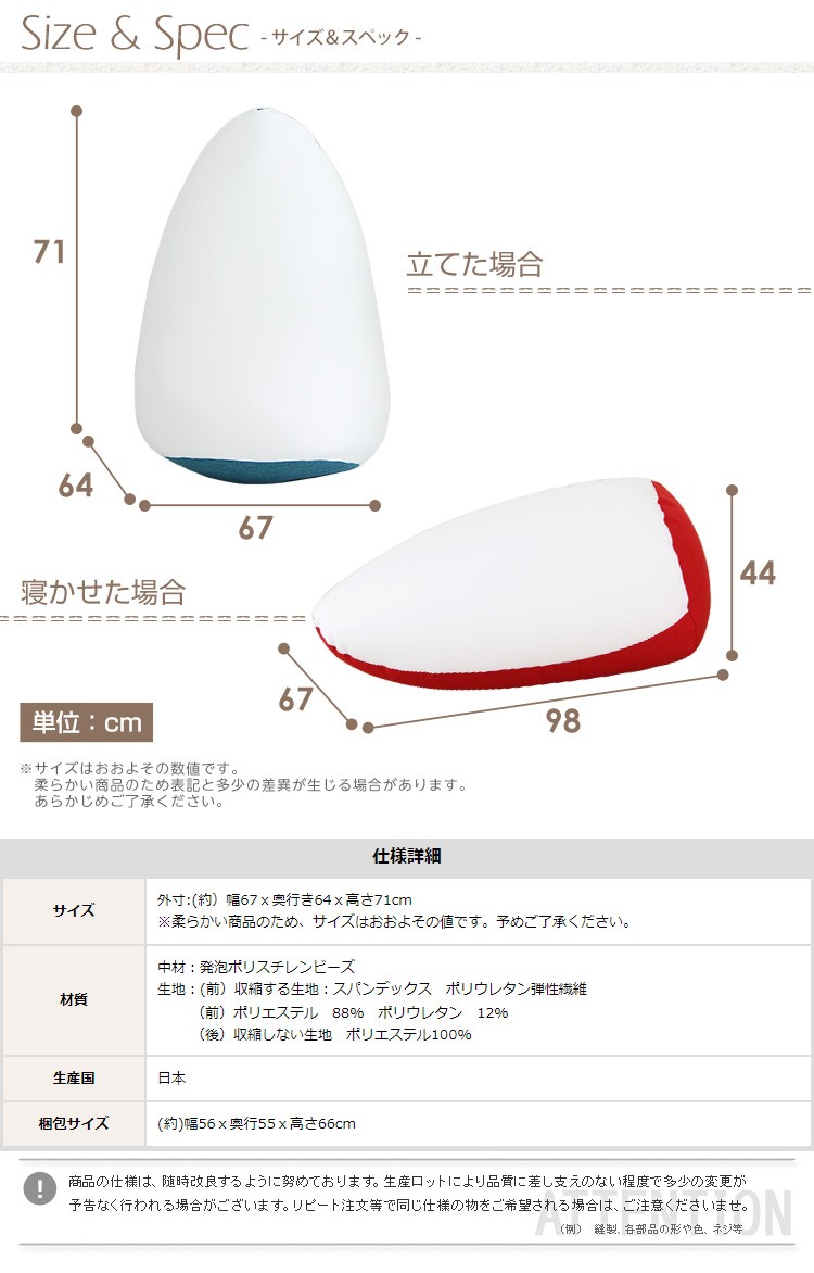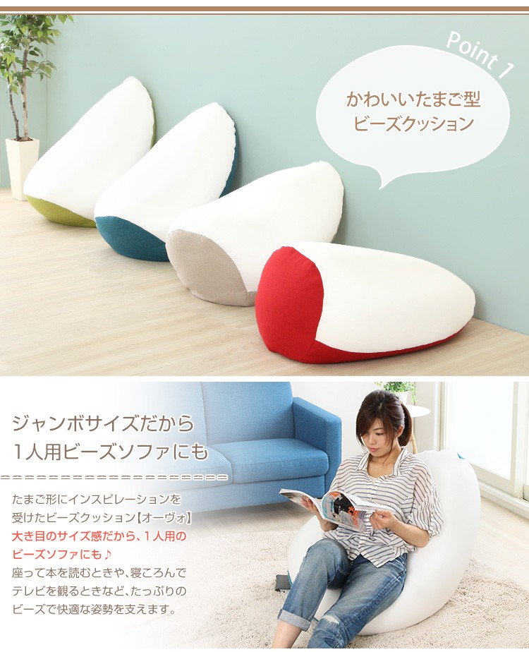 ジャンボビーズクッション【Ovo-オーヴォ-】(伸縮 しっかり生地 日本製)