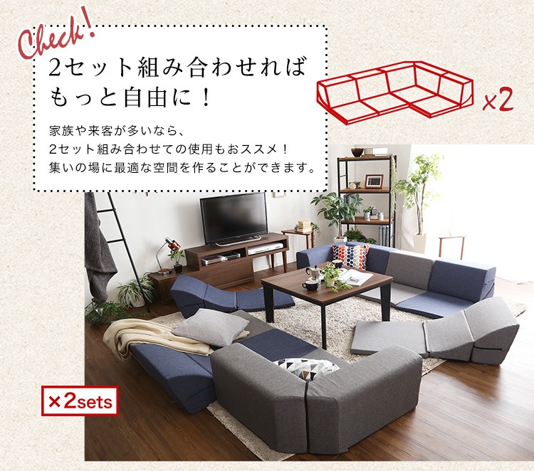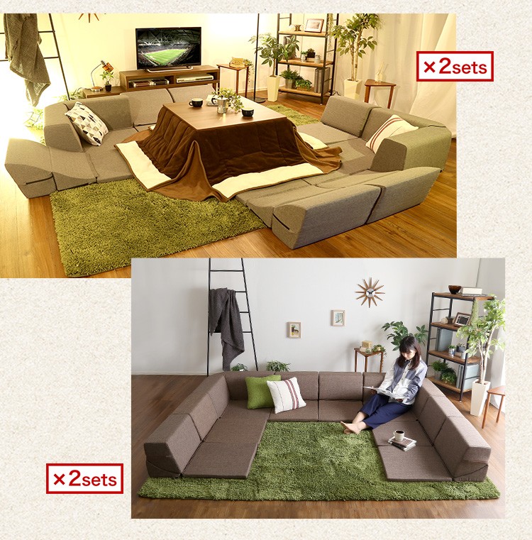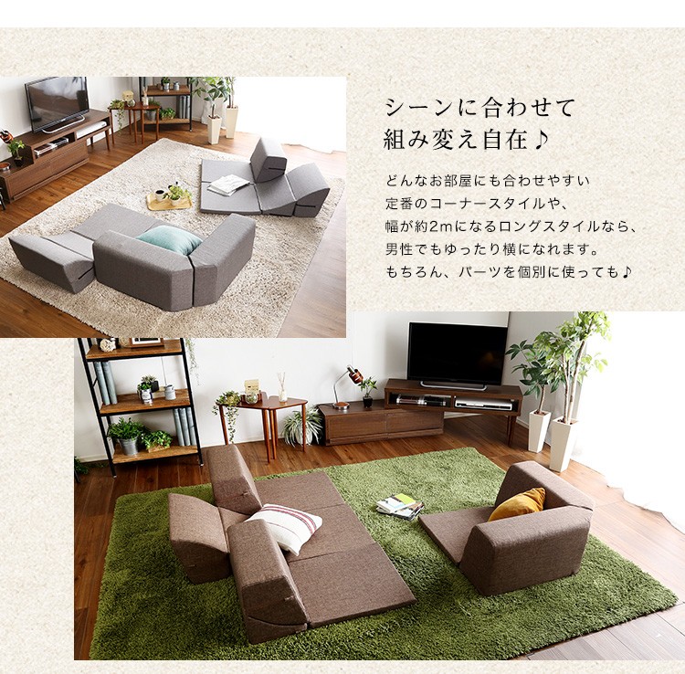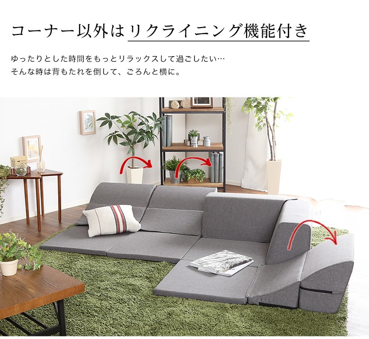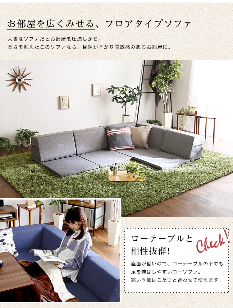 組み合わせ自由 日本製 コーナーローソファ フロアタイプ 【Linum-リナム- 2SET 】