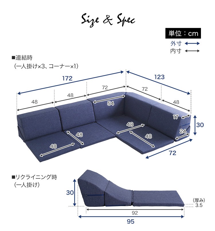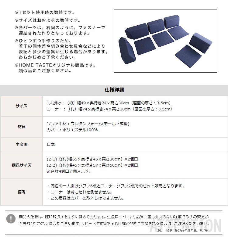 ■【【商品サイズ】1人掛け:(約)幅49x奥行74x高さ 30cmコーナー:(約)幅74x奥行74x高さ 30cm
