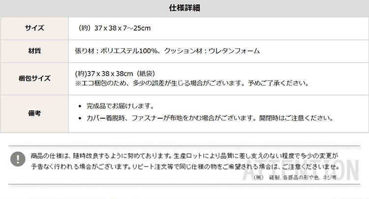 張り材:ポリエステル100%、クッション材:ウレタンフォーム