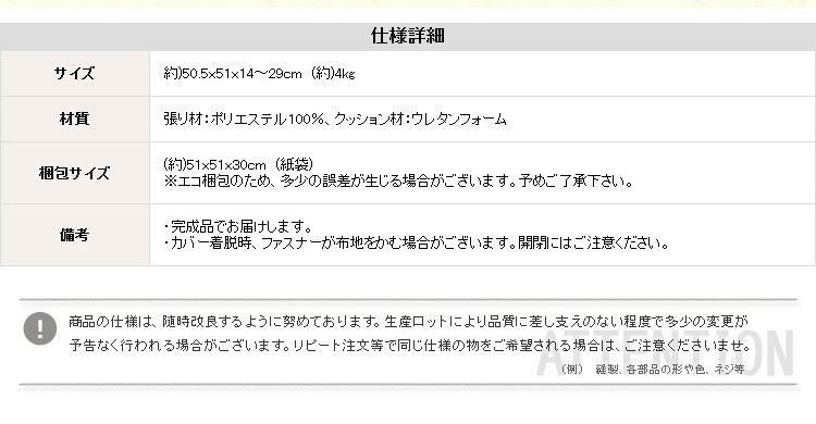 張り材:ポリエステル100%、クッション材:ウレタンフォーム
