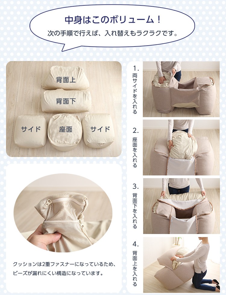 中身:発泡ポリスチレンビーズ・ウレタンフォーム