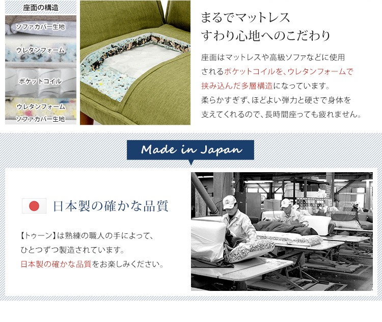 コンパクトカウチソファ【Thun-トゥーン-】(ポケットコイル入り 二人掛け 日本製)