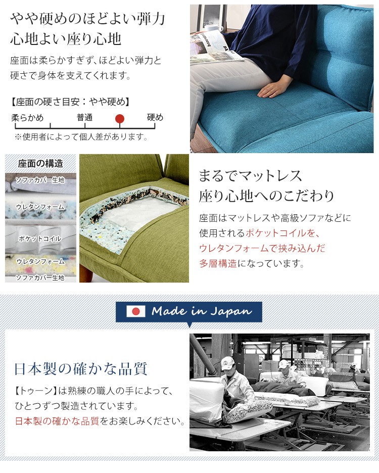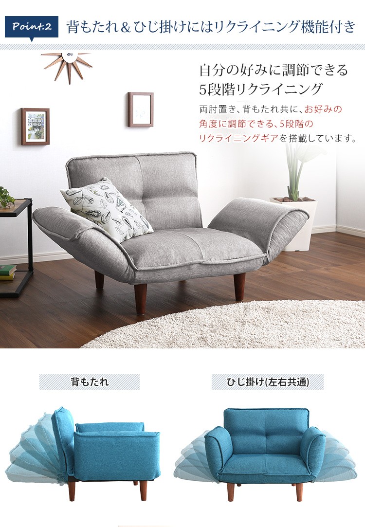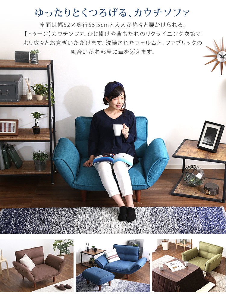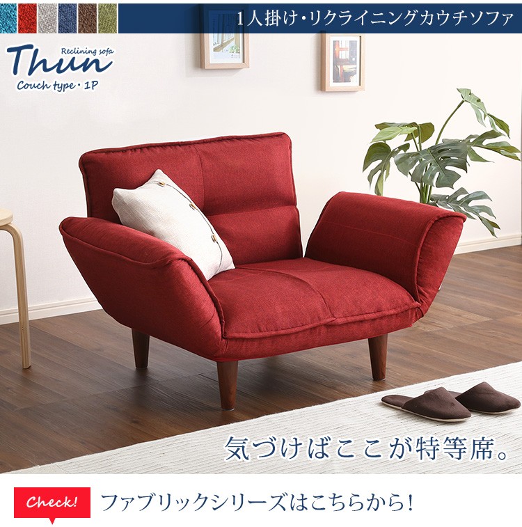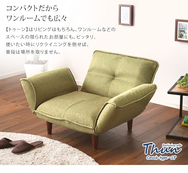 1人掛ソファ(布地)5段階リクライニング、フロアソファ、カウチソファに 日本製|Thun-トゥーン-