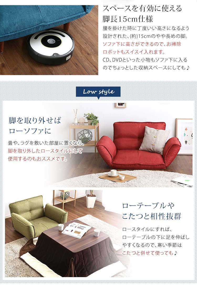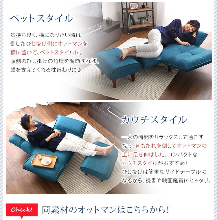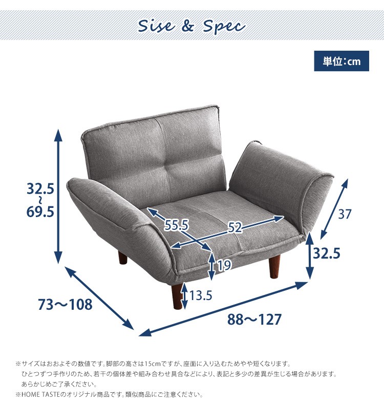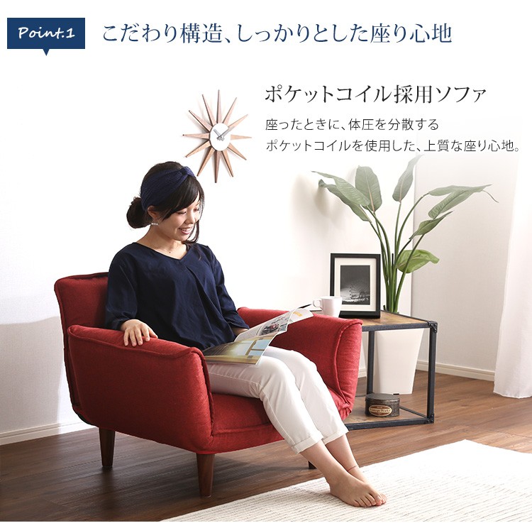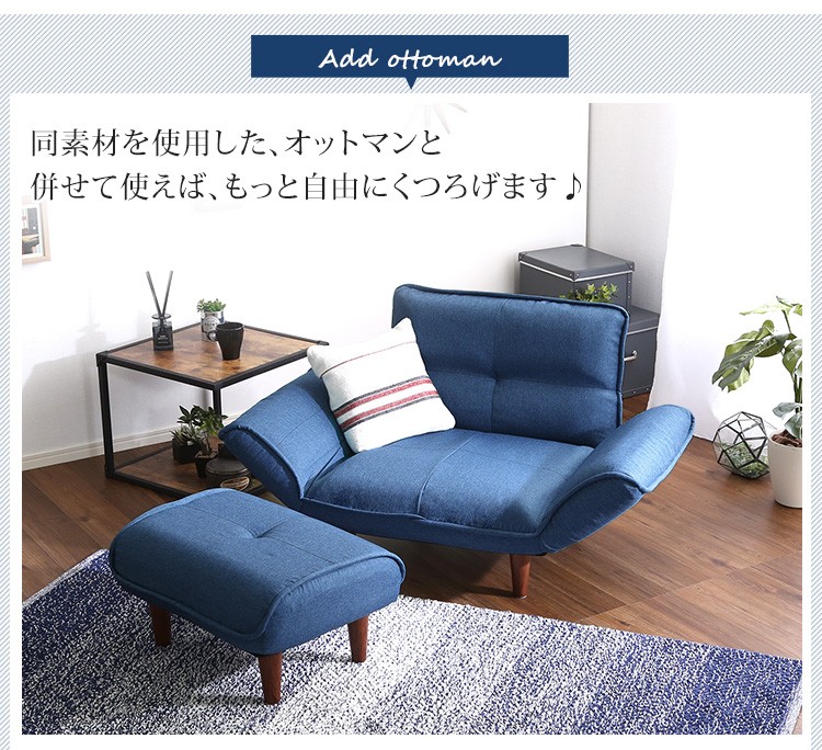 1人掛ソファ(布地)5段階リクライニング、フロアソファ、カウチソファに 日本製|Thun-トゥーン-