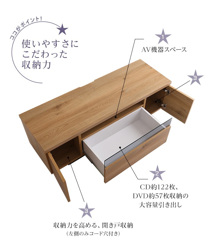 シンプルで美しいスタイリッシュなテレビ台(テレビボード) 木製 幅120cm 日本製・完成品 |luminos-ルミノス-