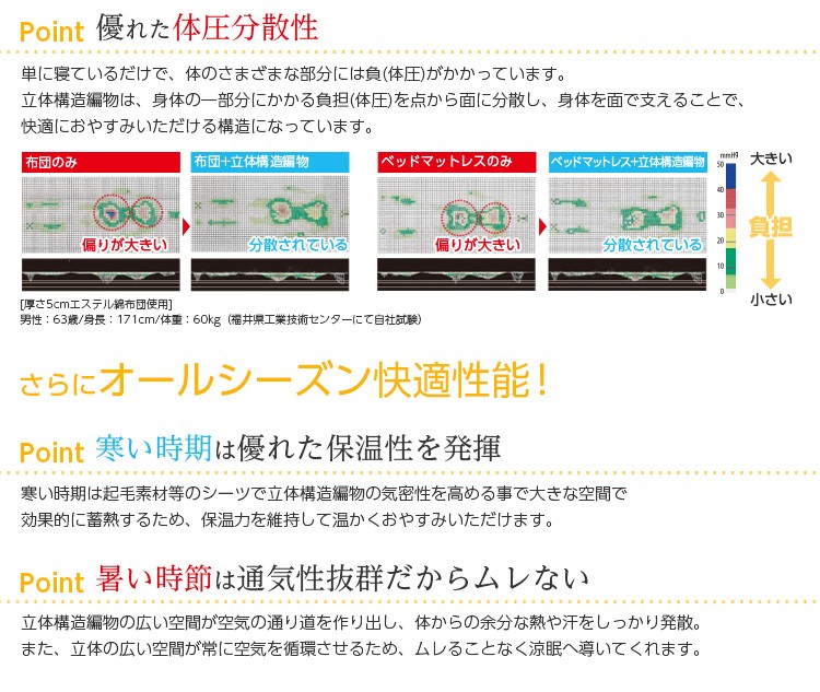 側地:片面/ハニカムメッシュ170g/m2(ポリエステル100%)、エアーラッセル11