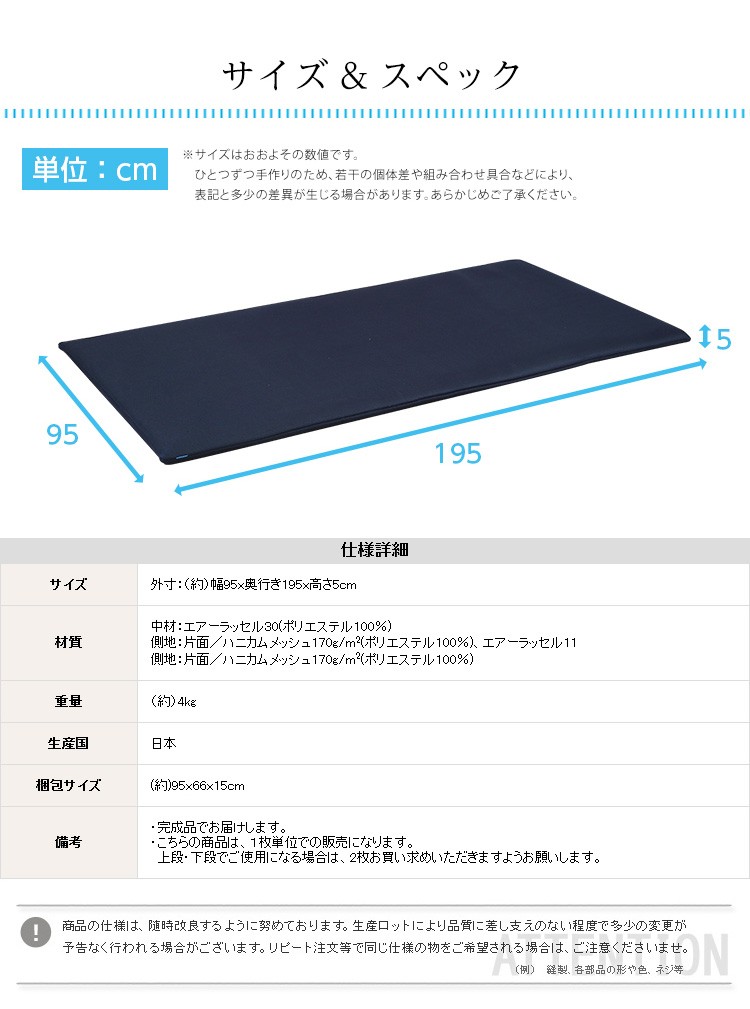 ファインエア【ファインエア二段ベッド用450】(体圧分散 衛生 通気 二段ベッド 日本製)
