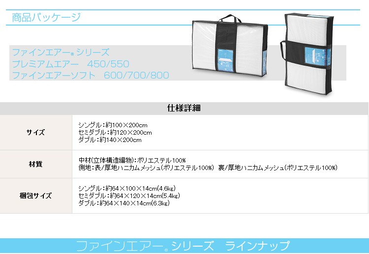 【日本製】ファインエアー(R)シリーズ【プレミアムエアー(スタンダード550[W厚地タイプ])ダブル】