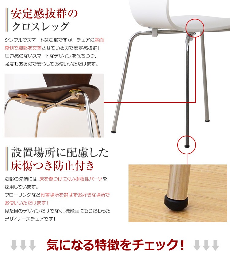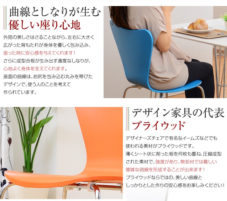 チェア/座・背面:天然木積層合板(ラッカー塗装)、脚:スチール(クロムメッキ)
