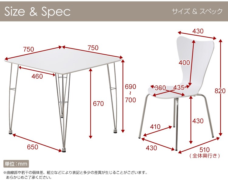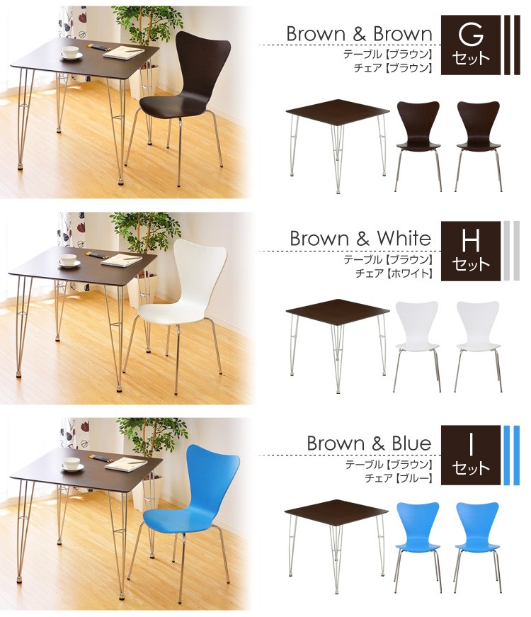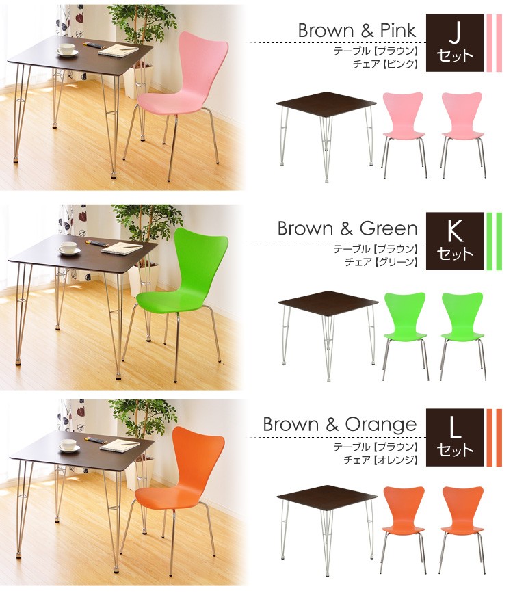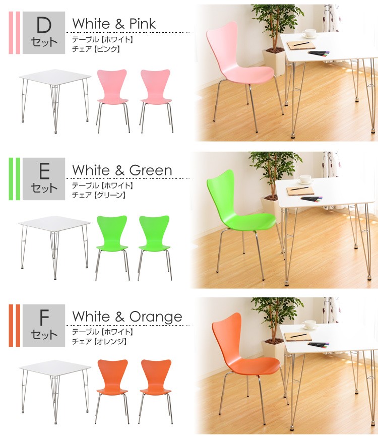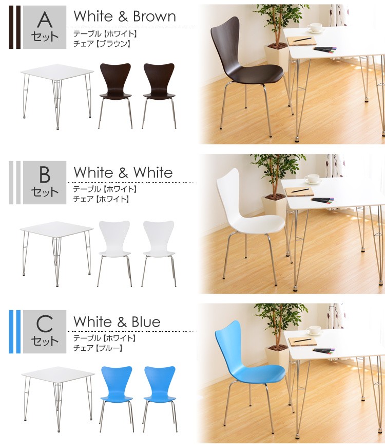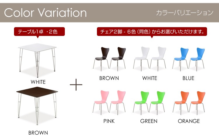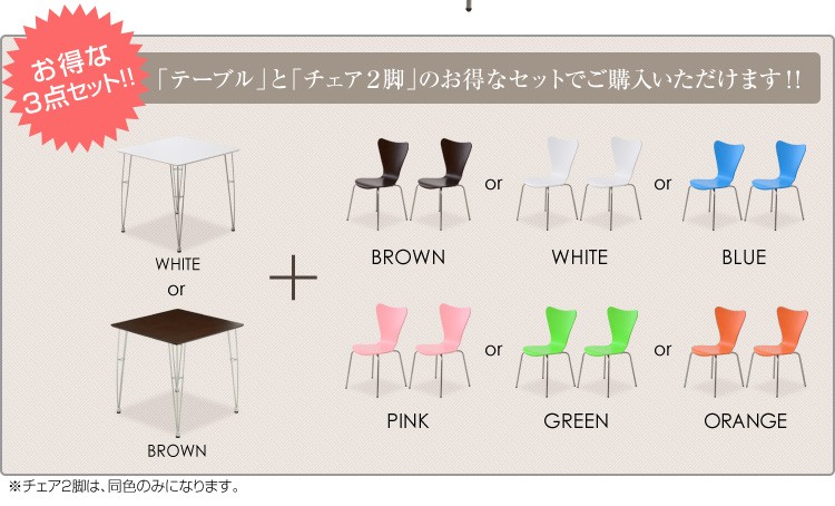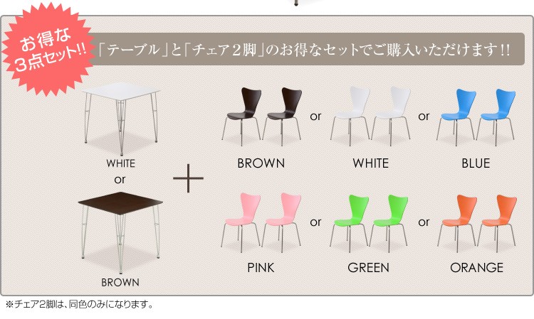 テーブル:ホワイト ダークブラウン、チェア2脚・6色(同色)からお選び頂けます