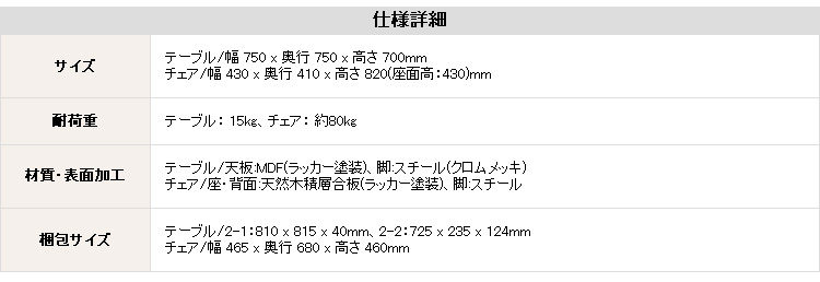 テーブル/天板:MDF(ラッカー塗装)、脚:スチーム(クロムメッキ)