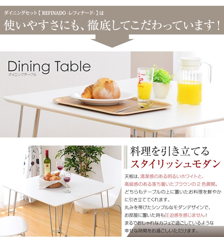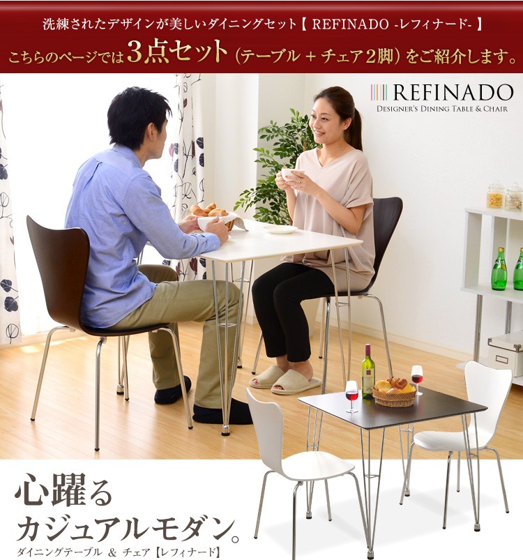 カジュアルモダンダイニング3点セット【-Refinado-レフィナード】(テーブル+チェア2脚)