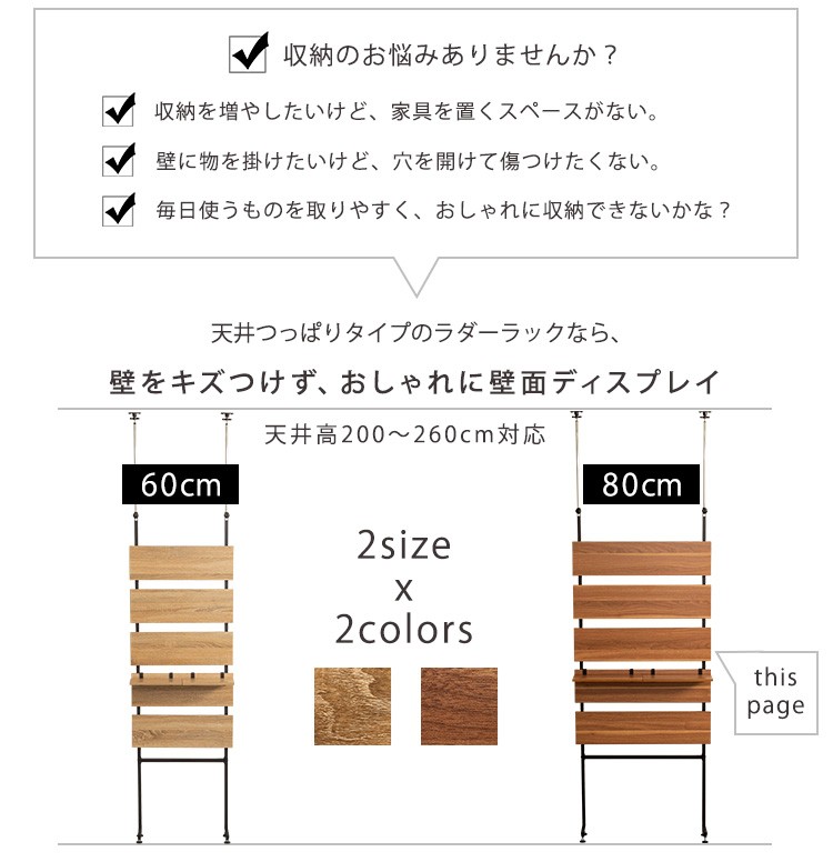 ラダーラック つっぱり棚 80cm 壁面収納 間仕切り