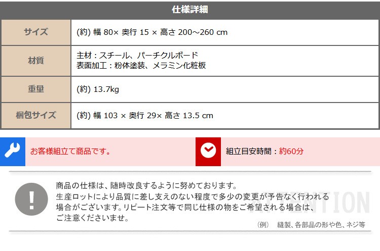 80x15x200〜260cm