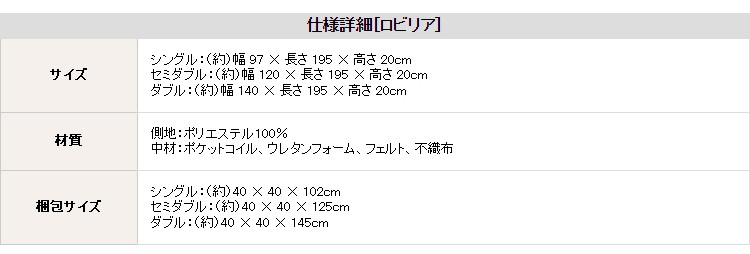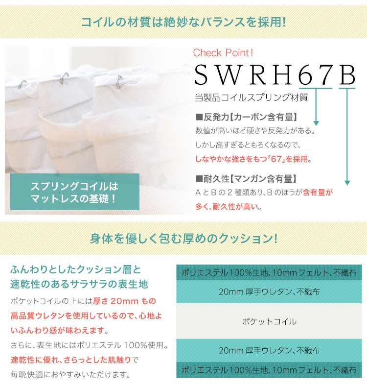 (マットレス)側地:ポリエステル100% 中材:ポケットコイル、ウレタンフォーム、フルト、不織布