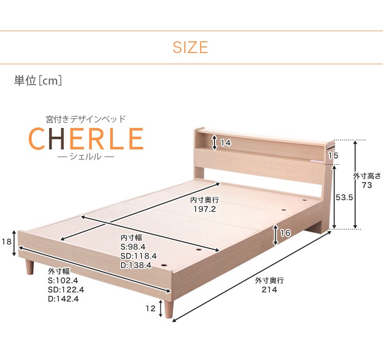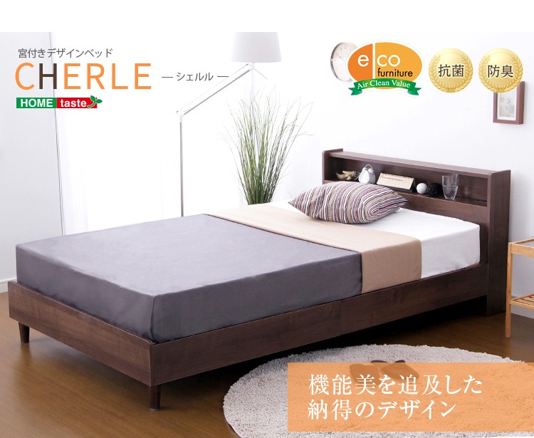 宮付きデザインベッド【シェルル-CHERLE-(シングル)】(ロール梱包のポケットコイルスプリングマットレス付き)