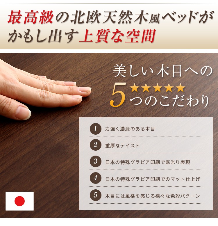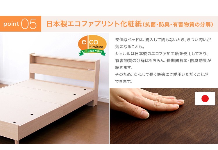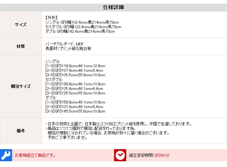 (ベッド)パーチクルボード、MDF、表面材:プリント紙化粧合板