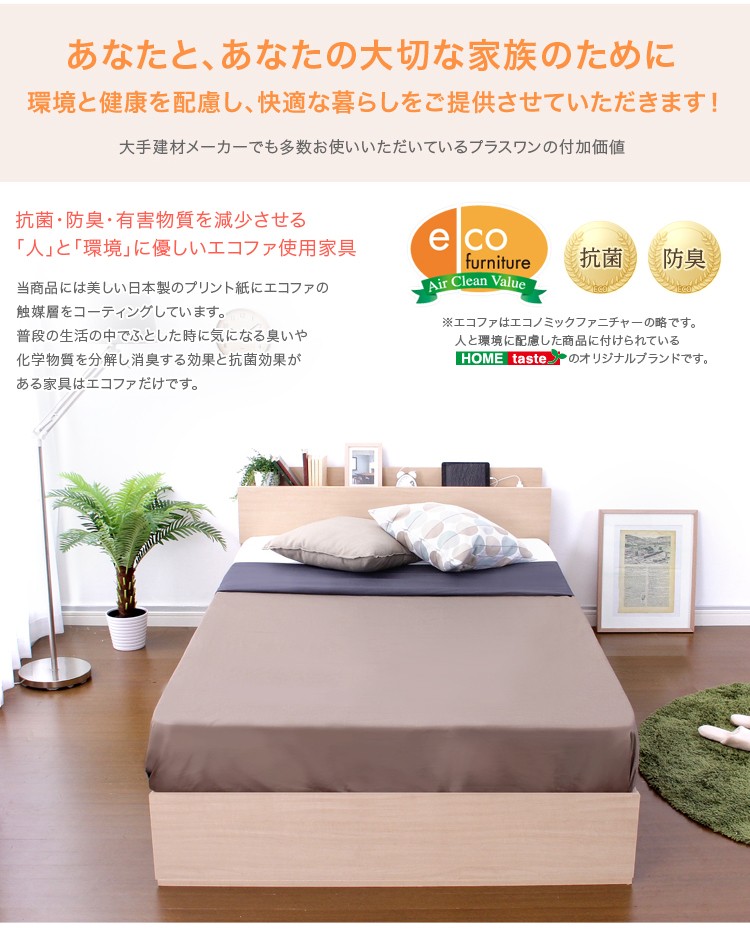ベッド 木製 宮棚 コンセント 引出 収納 マットレス付