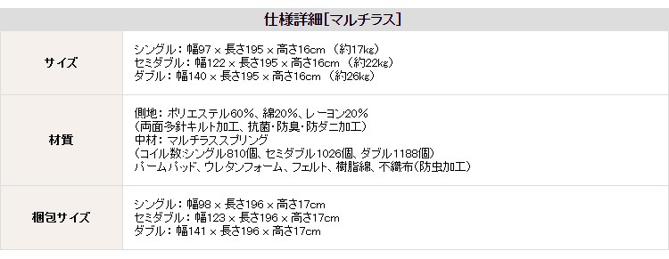 (マットレス)側地:ポリエステル60%、綿20%、レーヨン20%