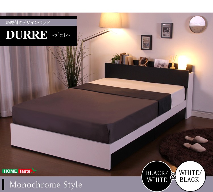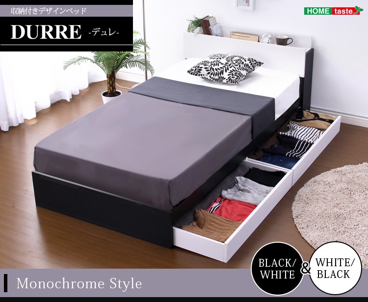 収納付きデザインベッド【デュレ-DURRE-(シングル)】(ロール梱包のポケットコイルスプリングマットレス付き)