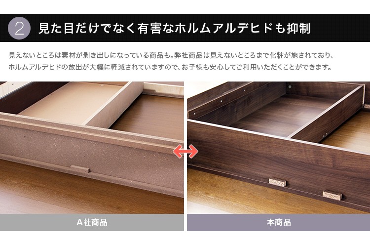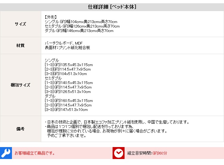 (ベッド)パーチクルボード、MDF、表面材:プリント紙化粧合板