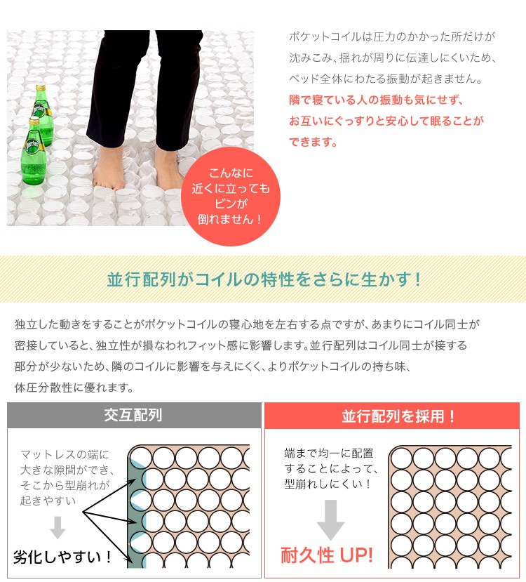 (マットレス)側地:ポリエステル100% 中材:ポケットコイル、ウレタンフォーム、フェルト、不織布