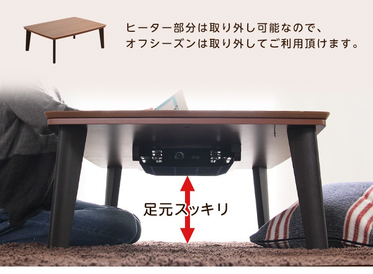 (こたつ本体)天板:天然木化粧繊維板(ウォールナット)、メラミン化粧繊維板