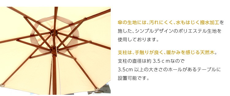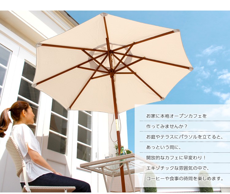 天然木 木製パラソル 210cm【ソナタ-SONATA-】パラソル 撥水 天然木