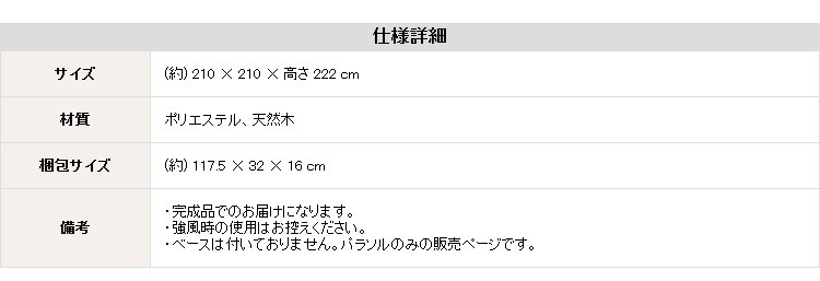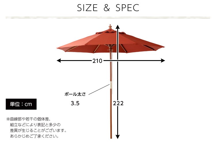 ガーデン パラソル 日よけ 木製 210cm