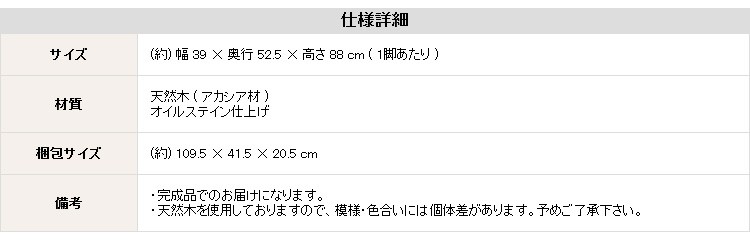 天然木(アカシア材)、オイルステイン仕上げ