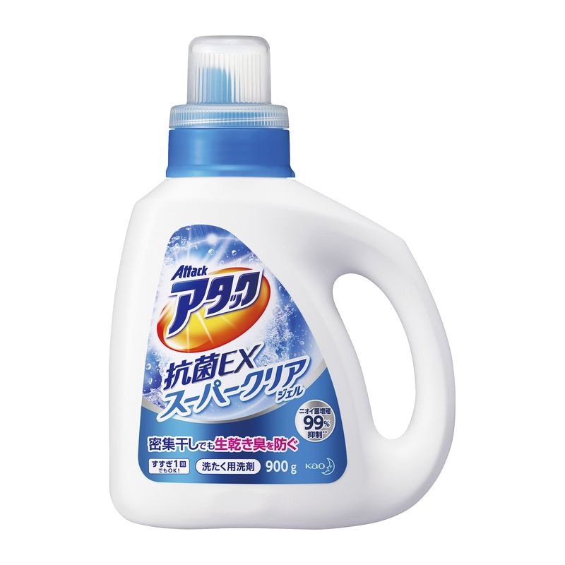 花王アタック3X:880g・詰替:690g×各1・花王アタック抗菌EXスーパークリアジェル:900g×1・詰替:770g×2、花王キュキュット泡スプレー:300mL・花王キュキュットクリア除菌(緑茶):240mL×各1