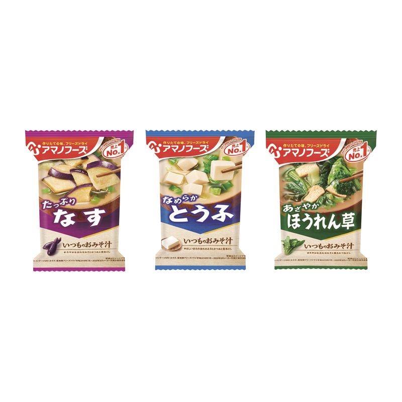 アマノフリーズドライのおみそ汁と、鮮やかな色とサラリとしたうまさのキッコーマンしぼりたて生しょうゆに毎日の食卓に役立つ食材を詰め合わせました。
