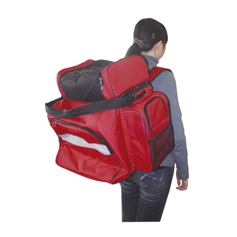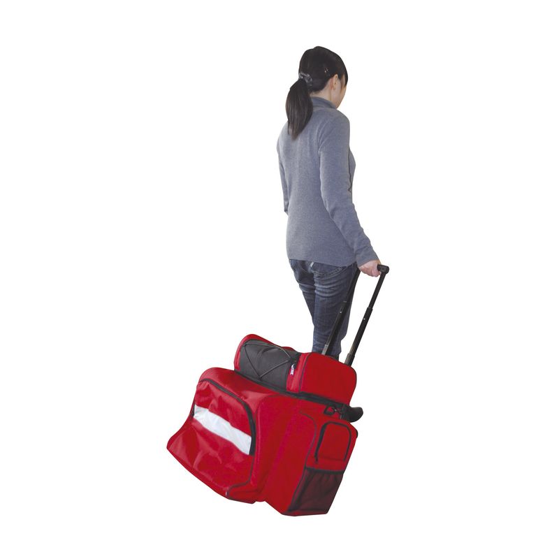 肩掛け・背負う・引く3通りの持ち方ができる3WAYバッグは反射テープ付で夜でも目立ち、メインの収納スペースのほかに4つのポケットが付いています。水タンクは容量20リットル、キャリーバッグにすっぽり収納できる形状で一度に大量の水を運ぶことができます。