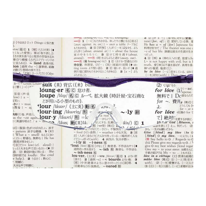 ワイドな視野で見やすく、メガネの上からも重ね掛けしやすいタイプです。柔らかフレームになり強度もアップしました。 ・拡大倍率1.6倍 ・読書や手元での作業に最適 ・焦点距離:30〜40cm ・ブルーライト35%カットクリアレンズ