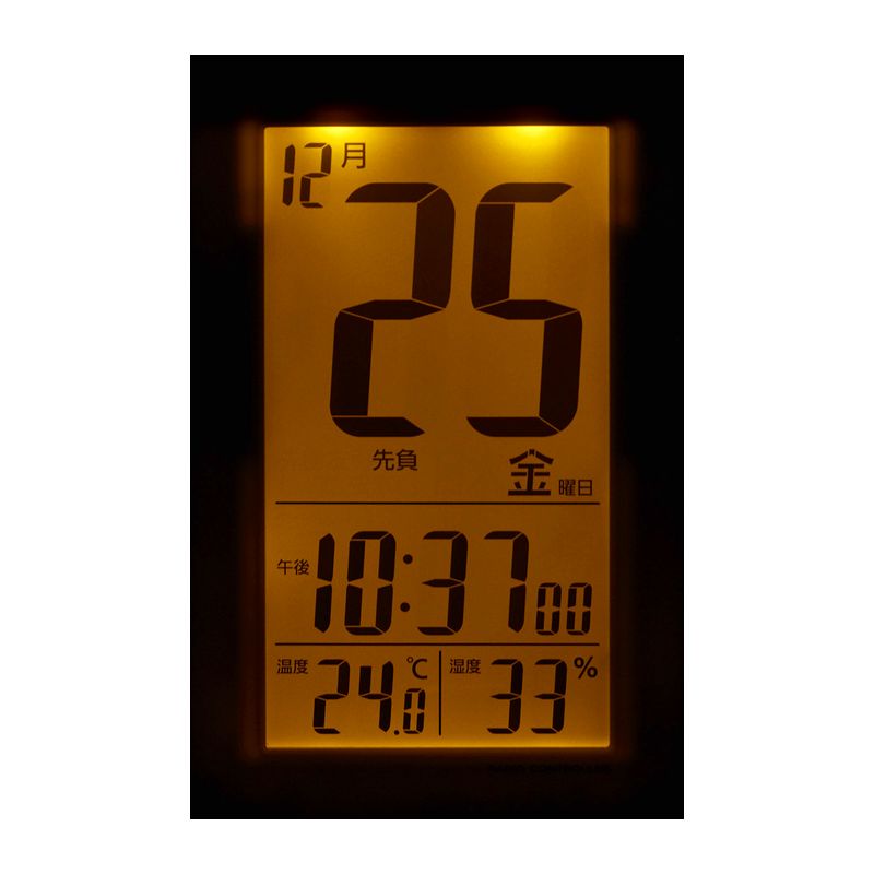 ●電波受信OFF ●アラームオートストップ●12時間表示(午前・午後) ●カレンダー表示●温・湿度表示 ●電子音アラーム●六曜カレンダー●掛置兼用