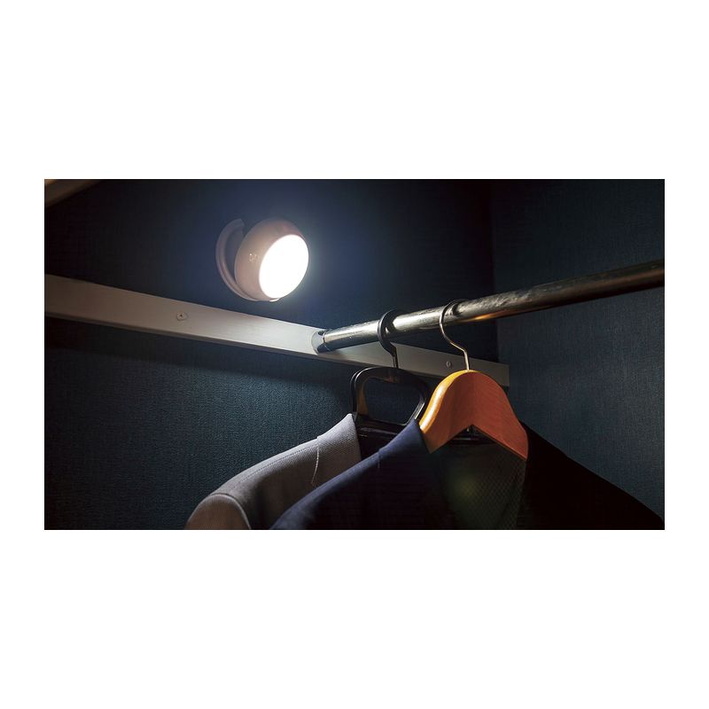 場所を選ばす使える便利なLEDセンサーライト・便利な2WAY仕様(置き型、壁面型)・人感&明暗のダブルセンサー機能・場所を選ばず設置できる乾電池仕様・水平垂直方向110°、距離約7mの広範囲なセンサー機能・白色系LED1個