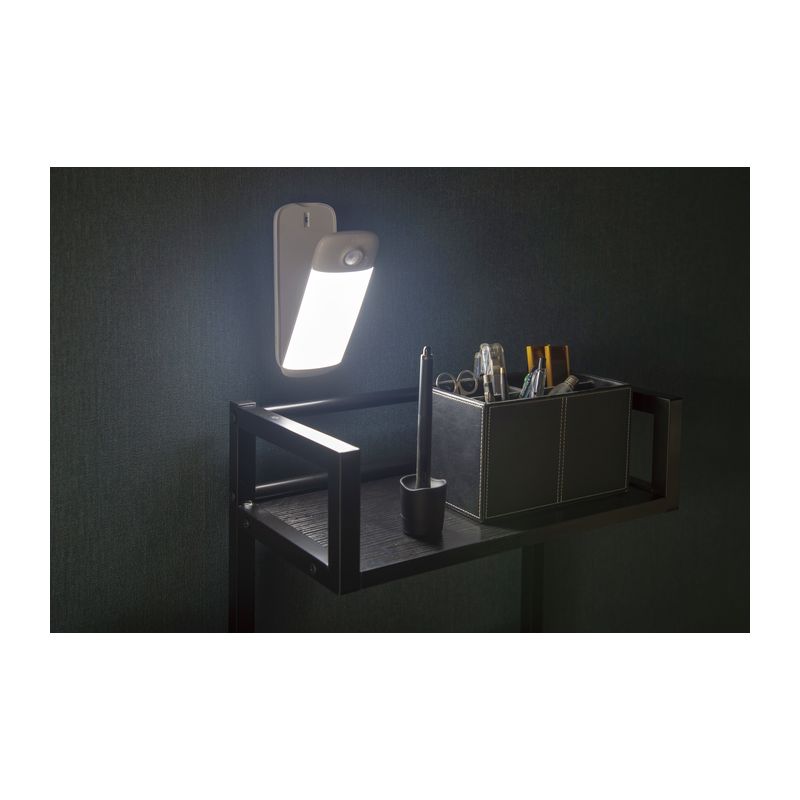場所を選ばす使える便利なLEDセンサーライト・便利な2WAY仕様(置き型、壁面型)・人感&明暗のダブルセンサー機能・場所を選ばず設置できる乾電池仕様【USBも使用可能】・モード切替(センサー点灯・常時・消灯)