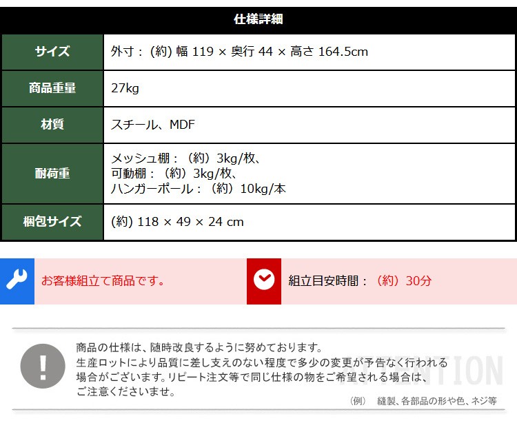 ハンガーラック119cm幅 【Lacatas-ラカタス-】 ダークブラウン
