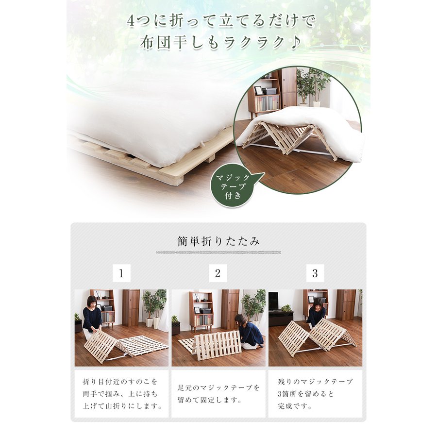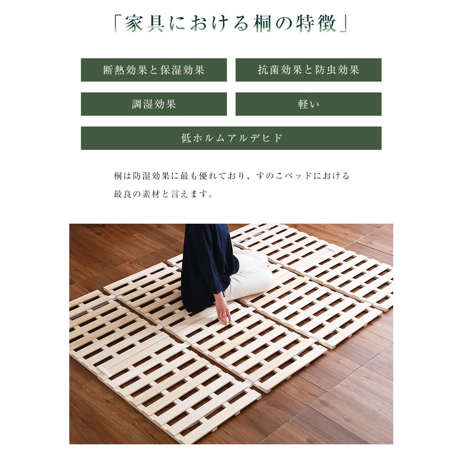 すのこベッド 4つ折り式 桐仕様(セミダブル)【Sommeil-ソメイユ-】 ベッド 折りたたみ 折り畳み すのこベッド 桐 すのこ 四つ折り 木製 湿気
