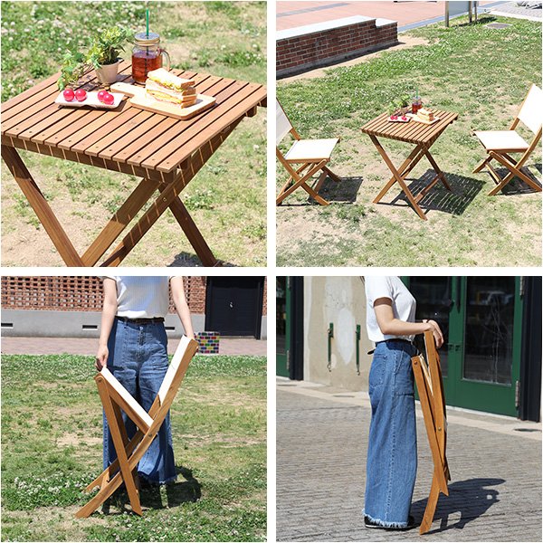 折りたたみガーデンテーブル・チェア(3点セット)人気素材のアカシア材を使用 | Alisa-アリーザ-