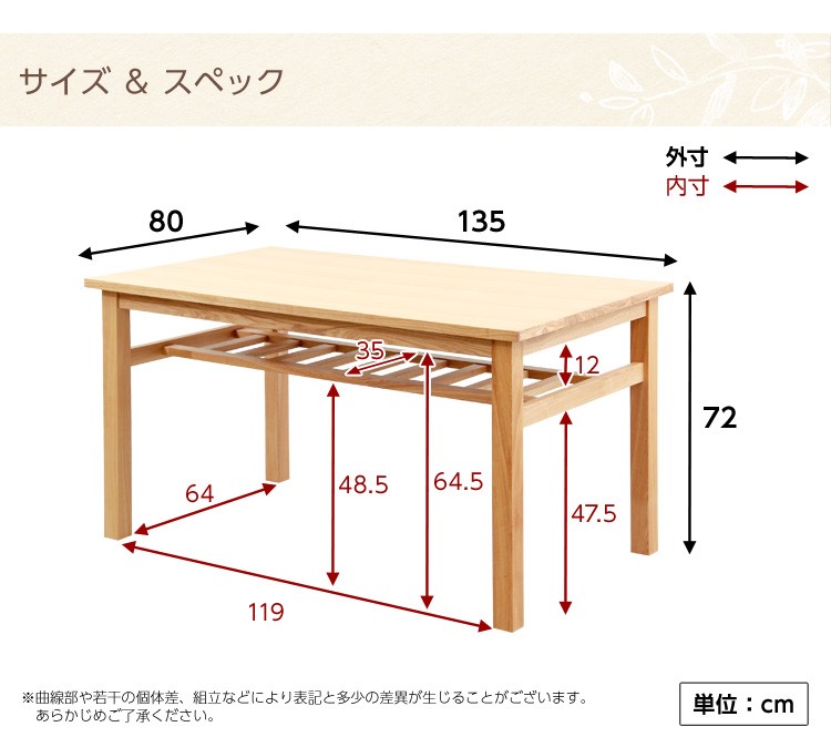 ダイニングテーブル【Miitis-ミティス-】(幅135cmタイプ)単品