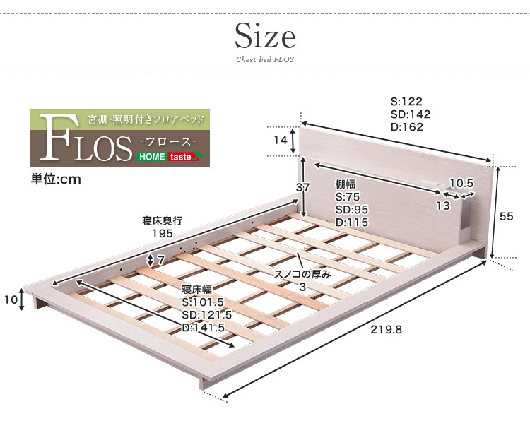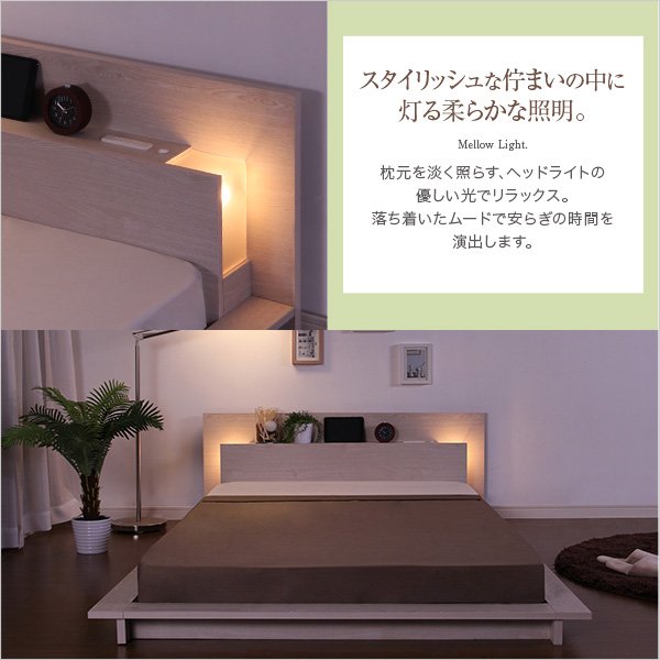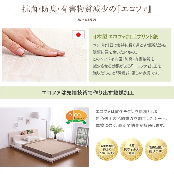 【フロース-FLOS-(シングル)】(宮、照明、コンセント付きモダンベッド フロアベッド ローベッド)