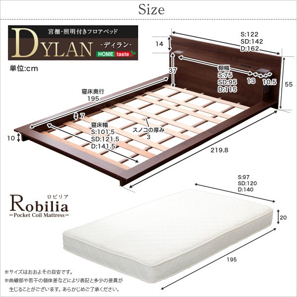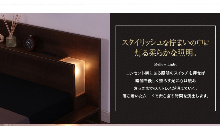 宮、照明、コンセント付き【ディラン-DYLAN-(シングル)】(ロール梱包のポケットコイルスプリングマットレス付き)
