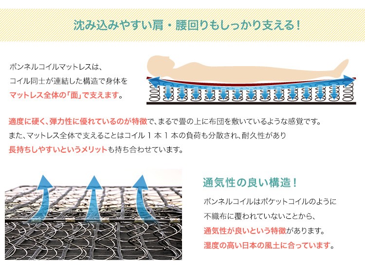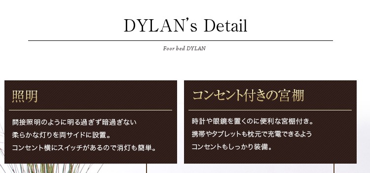 宮、照明、コンセント付き【ディラン-DYLAN-(シングル)】(ロール梱包のボンネルコイルマットレス付き)